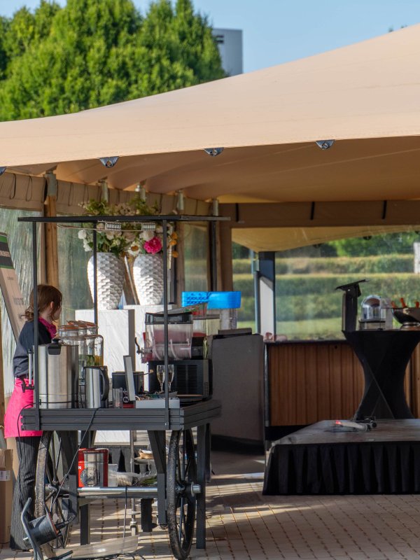 Als cateringpartner zorgden we voor de complete uitvoering van het evenement. Dit omvatte het opzetten van een sfeervolle tent met podium en het verzorgen van een professioneel geluidssysteem voor de speeches en muziek. We wisten de sfeer perfect vast te leggen, zodat de gasten zich meteen op hun gemak voelden en volop konden genieten van de activiteiten.